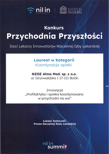 Nasza Przychodnia została laureatem konkursu Naczelnej Izby Lekarskiej – „Opieka koordynowana na wsi”